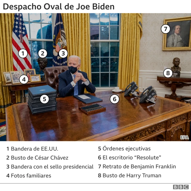 Es común que los nuevos presidentes de Estados Unidos den su toque personal al Despacho Oval de la Casa Blanca a su llegada. Y los cambios que hizo Joe Biden son toda una declaración de intenciones.
