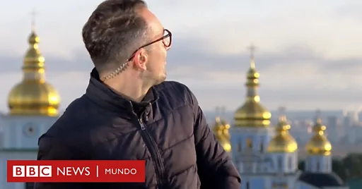 Uno de los corresponsales en Kyiv, Hugo Bachega, se encontraba transmitiendo en vivo desde la posición de la BBC frente al Monasterio de San Miguel de las Cúpulas Doradas, cuando escuchó un fuerte ruido en el cielo.