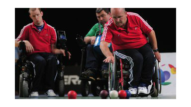 Este juego, parecido a las bochas o la petanca, es practicado por atletas con parálisis cerebral y otras discapacidades físicas graves (distrofia muscular, por ejemplo) que compiten en silla de ruedas, y la clasificación se divide en cuatro clases.