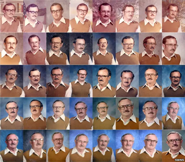 Este instructor de gimnasia de la escuela primaria Prestonwood de la ciudad estadounidense de Dallas, Texas, ha vestido estas mismas prendas para cada una de las 40 fotos oficiales que le han tomado, en el transcurso de cada año escolar, desde 1973.