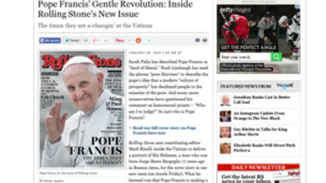 En su portada suelen aparecer los músicos del momento, pero ahora por primera vez la revista estadounidense Rolling Stone eligió a un personaje inusual para adornar su cubierta: el papa Francisco.