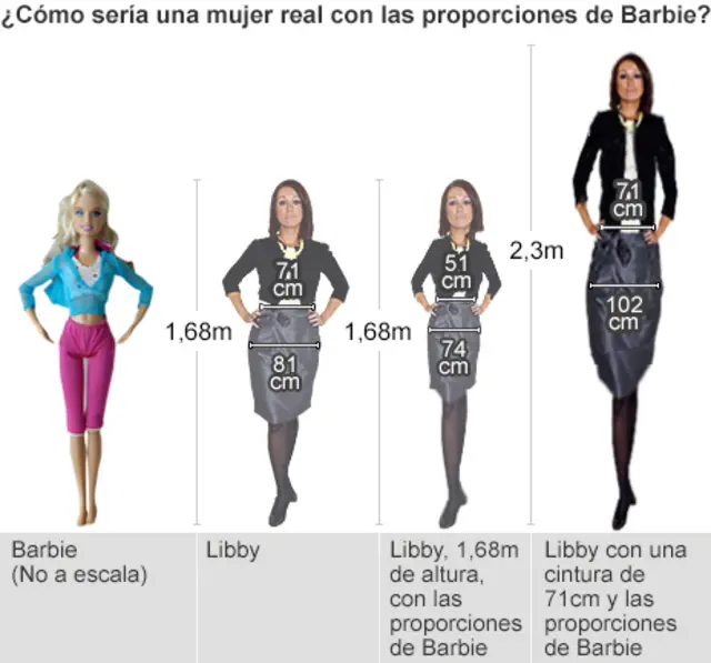 Una revista calculó en 2009 cómo se vería una Barbie a tamaño real, escalándola a proporciones humanas, y los resultados fueron sorprendentes, tal como se ve más abajo.