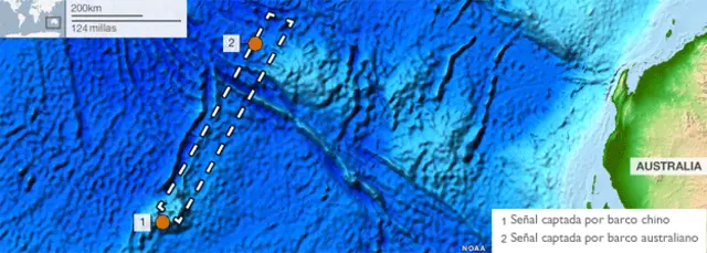 Aunque no se ha confirmado si los "pings" de 37,5 kilohercios captados por un buque australiano y otro chino el 5 y 6 de abril son del avión desaparecido, esto ha permitido que los equipos de búsqueda puedan enfocar las tareas en un área mucho más reducida del Océano Índico.