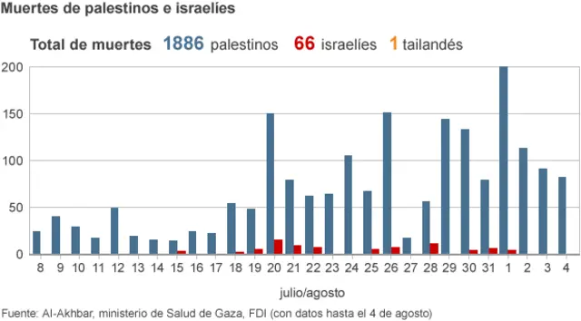 En un informe reciente, señaló que para el 6 de agosto un total de 1.843 palestinos resultaron muertos, 66 israelíes y un ciudadano tailandés desde que Israel lanzó la Operación Margen Protector el 8 de julio.