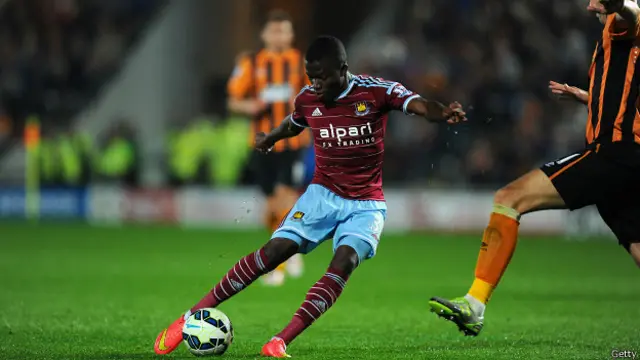 La floja marca de la defensa de Hull le dio tiempo al delantero del West Ham poner en práctica su plan y de qué manera lo ejecutó.