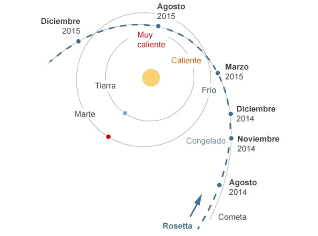 Marzo 2015: fecha límite. Para esta fecha se espera que Philae pueda verse afectado por el aumento de la temperatura en el cometa, así como por la acumulación de polvo sobre los paneles solares que le sirven de batería.