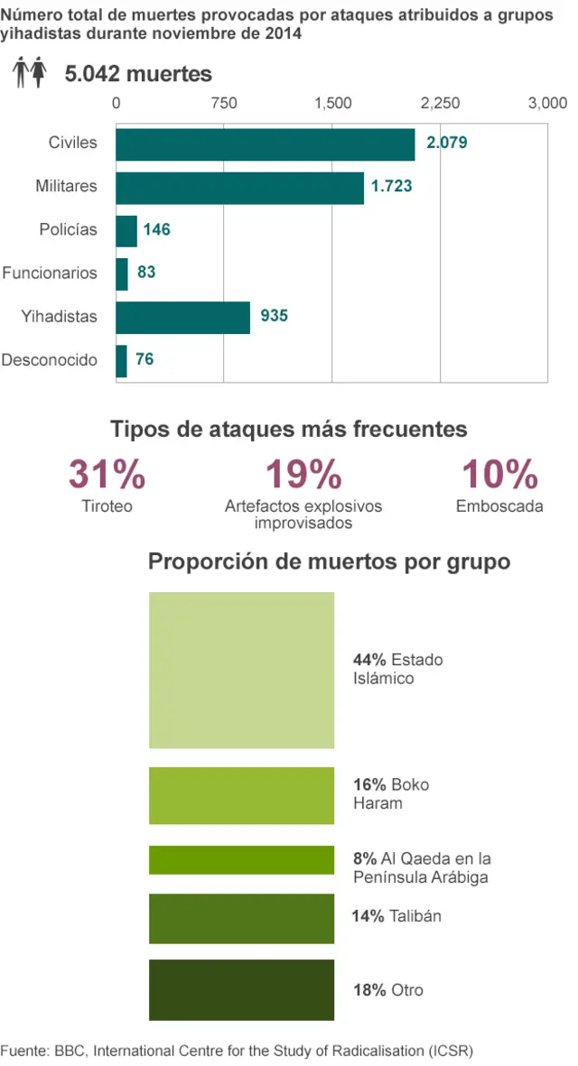 <link type="page"><caption> Haga clic aquí para ver nuestra guía animada sobre el costo humano del yihadismo.</caption><url href="http://www.bbc.co.uk/mundo/video_fotos/2014/12/141210_video_numeros_costo_humano_yihadismo_amv" platform="highweb"/></link>
