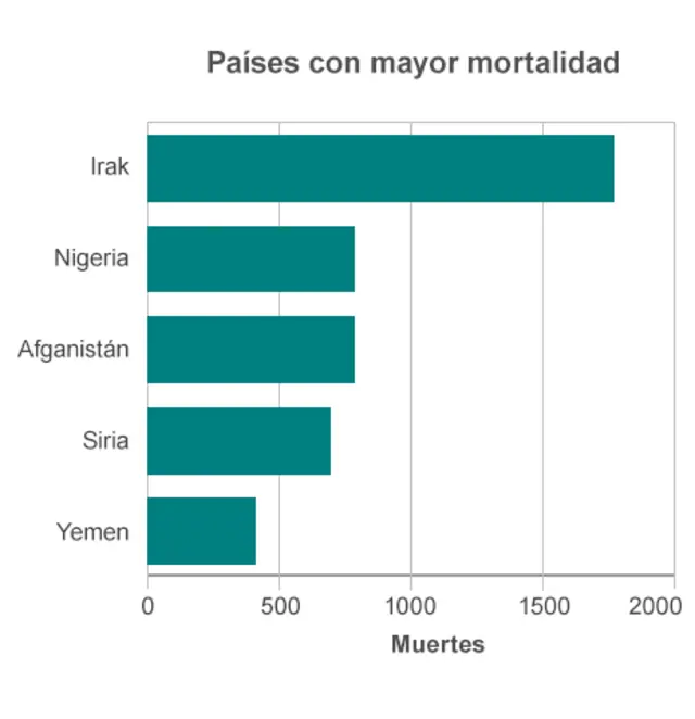 El mayor número de víctimas se registró en esos dos países, además de Nigeria y Afganistán.