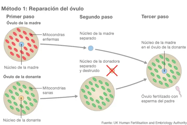 Los trastornos mitocondriales siempre pasan de madre a hijo, así que la técnica incluye utilizar óvulos de un donante sano.