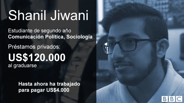 Shanil Jiwani actualmente debe US$60.000 en préstamos y cree que la cifra se duplicará para cuando se gradúe. Para cuando se enfrente al mundo real tendrá una deuda de US$120.000.