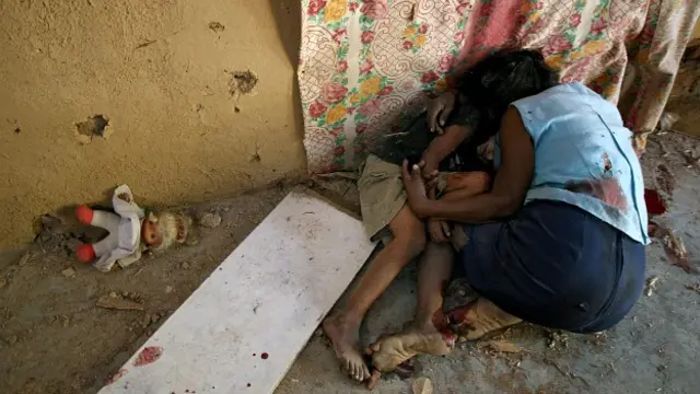 Mirar las fotos que Pedro ha tomado para la agencia AFP -donde ahora labora- es hacer un recorrido por los bajos fondos del infierno. Un torso sin extremidades ni testa. Una cabeza desollada. Una abuela y una nieta confundidas en un abrazo final.