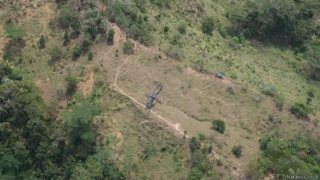Primero fue un vuelo hacia un descampado para destruir una pista de aterrizaje clandestina y luego un allanamiento en una casa rural, en la parte alta de una colina, donde el helicóptero no pudo tocar tierra para dejarnos bajar y apenas se mantenía con un movimiento pendular, a metros de una arboleda.