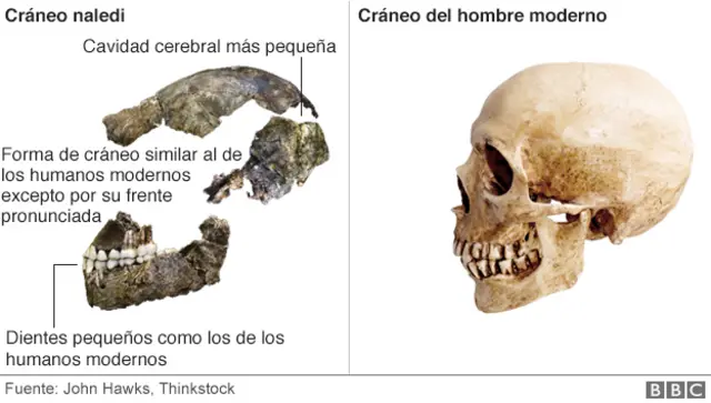 El Homo naledi no se parece a ningún humano primitivo hallado en África. Tiene un cerebro diminuto: del tamaño de un gorila y una cadera y hombros primitivos.