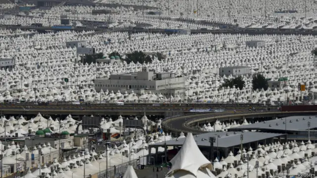 Mina es un amplio valle situado a unos 5 kilómetros de La Meca, y alberga 160.000 tiendas de peregrinos.
