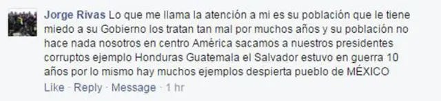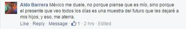 "México se esta cayendo a pedazos, por la violencia, inseguridad, desplome de la moneda nacional ante el dolar, empleos mal pagados, una clase política que tiene un apetito insaciable por el dinero, mientras en comunidades sierreñas comer una vez al día ya es mucho y eso a duras penas", excribía Lucio Rojo Ángeles en Facebook.
