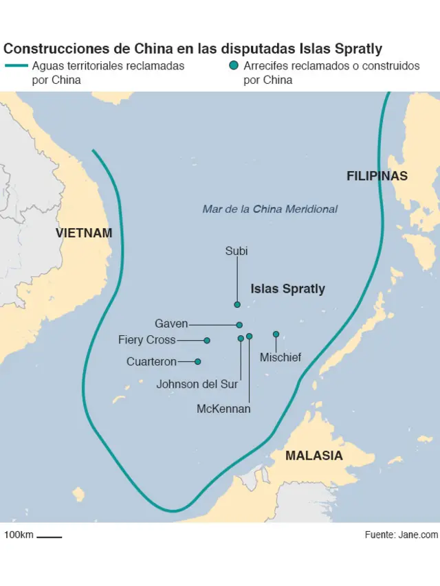 Las aguas que rodean las islas Paracelso y Spratly y archipiélagos aledaños son reclamadas –total o parcialmente– por varios países.