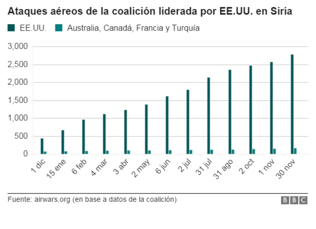 Rusia no es parte de la coalición, pero también está bombardeando a los yihadistas.