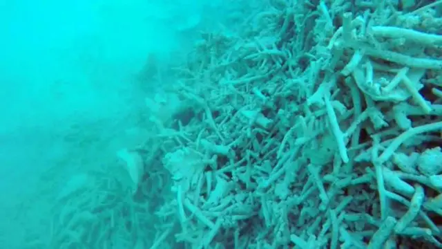 Este lugar había sido un rico ecosistema coralino. Ahora el fondo estaba cubierto de capas y más capas de restos, millones de fragmentos de coral destruidos: blanco y muerto, como huesos.
