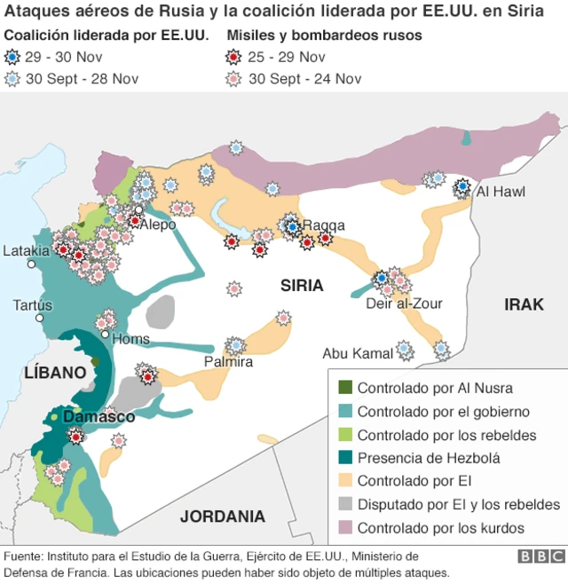 La campaña rusa coincide con la de la coalición liderada por EE.UU. que tiene como objetivo a EI.