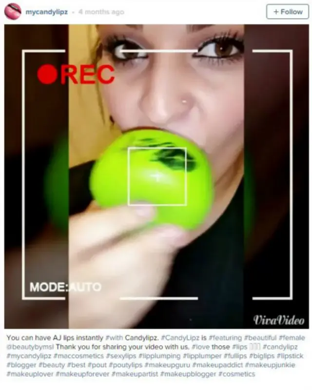 Había comprado CandyLipz por internet y decidió probarlo mientras dos de sus amigas la grababan.