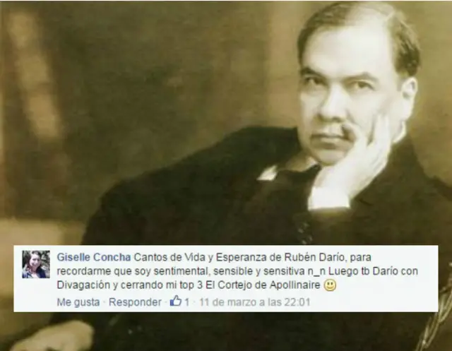 A través de nuestra página de Facebook, Giselle Concha compartió su top tres poético, encabezado por "Cantos de vida y esperanza" ("para recordarme que soy sentimental, sensible y sensitiva") y "Divagación".