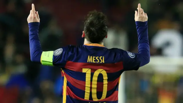 Como tantas otras veces en estos años, Messi apuntó al cielo con las dos manos.