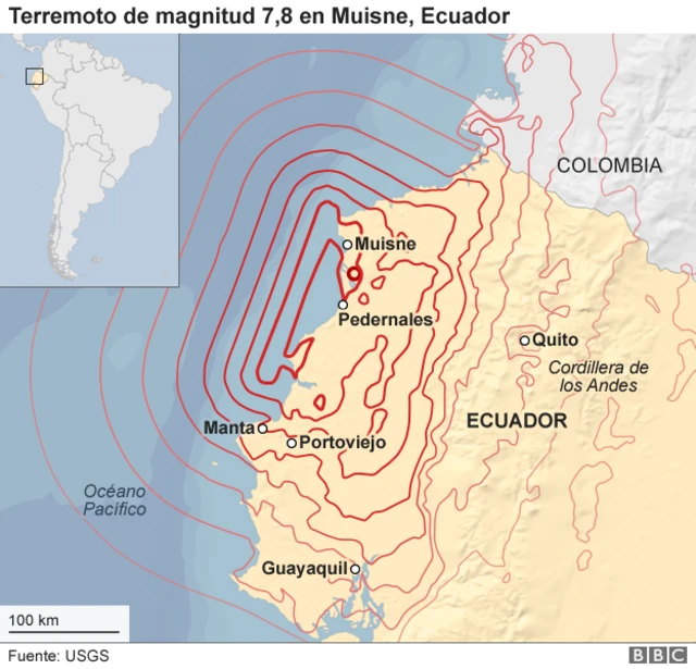 El epicentro del temblor se situó entre las localidades de Cojimíes y Pedernales, en la zona norte de la provincia de Manabí, donde están las comunidades más afectadas.