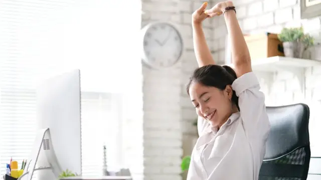 Metters recomienda hacer algunos estiramientos en el escritorioo caminar hacia la ventana para ver qué sucede afuera.