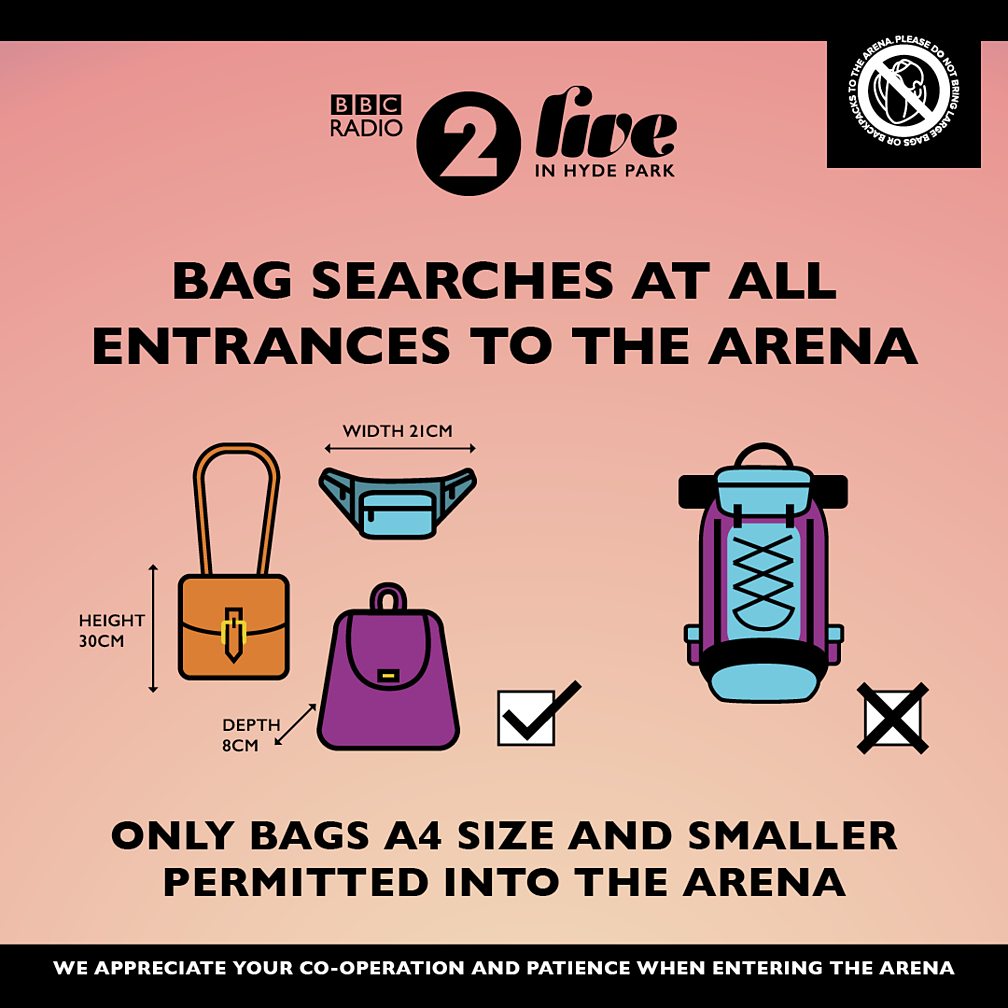 The following items CAN be brought in to the Radio 2 in Hyde Park event: