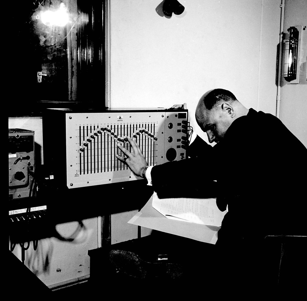 John Baker re-directs a sound. John was a jazz pianist who educated at the Royal Academy of Music. He was a Workshop employee from 1963 to 1974.