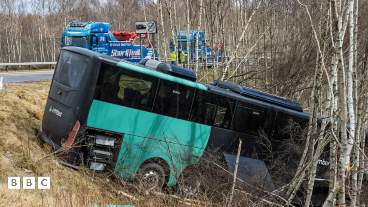 Tha dithis a' faighinn lèighis san ospadal an dèidh mar a chaidh bus far an A9 beagan tuath air an Aghaidh Mhòir agus le bruaich.