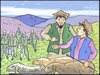 لکه چې نوريه ويده ده او د کور کارونه لاهم ستا ترغاړې دي، چې دا کارونه به نوريه نوره هم نازدانه کړي!)) اجمل د ګل مکۍ خبرې ردوي او وايي چې ګل مکۍ دهغوى په ژوند کې لاسوهنه کوي، خو ګل مکۍ د اجمل دا خبرې د نورو د شيطانۍ له کبله ګڼي. اجمل ګل مکۍ ته اخطار ورکوي، چې له دې وروسته بايد له نوريې سره غرض نه لري، ځکه هغه په کم عمر کې واده شوې او ډيرې نادودې يې ليدلي دي. ناظر که شپون ؟ ناظر پيسې شماري. نسيم له ليرې راځي او ترې پوښتي، چې ولې له ځان سره بونګيده او د هغه په ليدو يې کوم څه په خپل جېب کې پټ کړل.
