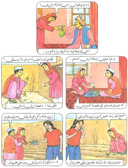 "د ميوه لرونکو نيالگيو د بوزغلي د جوړولو له پاره بايد د ميوو زړي څه موده په اوبو کې کيښودل شي او بيا د خاورو لاندې وکرل شي" گلخان غواړي چې باغ جوړ کړي. فتح خان ورته د مختلقو ميوو زړي راوړي. دوى زړي لامده کوي غواړي چې د مېوه لرونکو نيالگيو بوزغلى جوړ کړي.