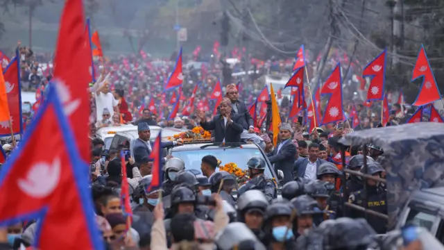ज्ञानेन्द्र शाहको 'स्वागत'मा सडकमा 'ठूलो' भिड, सरकार भन्छ, 'दबाव महसुस गरेका छैनौँ'
