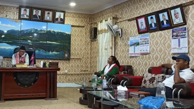 कर्णाली प्रदेशका उद्योग, पर्यटन, वन तथा वातावरणमन्त्रीको कार्यकक्षमा राष्ट्रपति, प्रधानमन्त्री, प्रदेश प्रमुख र मुख्यमन्त्रीका तस्बिर लहरै राखिएको छ।