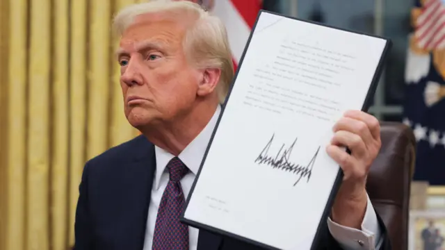 साँझ भएको हस्ताक्षर समारोहमा ट्रम्पले परम्परागत रूपमा (अघिल्ला सरकारका आदेश उल्ट्याउने) कार्यलाई नाटकीय बनाइदिए।