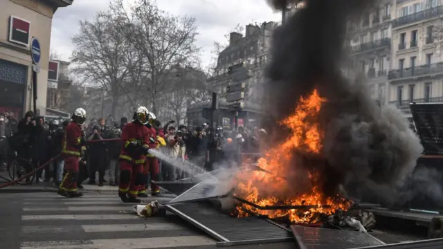 प्यारिसमा सामान्यतया शान्तिपूर्ण प्रदर्शनहरू हुँदा पसल तथा सडकका सामग्रीहरू तोडफोड हुने तथा प्रदर्शनकारी र प्रहरीहरू बीच झडप हुने गरेको रोएटर्स समाचार संस्थाले जनाएको छ।
