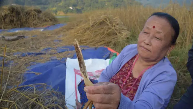 पोखरा-२३ की दिल सुब्बा गुरुङले आठ रोपनी क्षेत्रफलमा धान लगाएकी थिइन। केही धान निस्किएला किन भनेर धान काट्ने, चुट्न गर्न थालिन। “तर दुई रोपनी क्षेत्रफलको धान काटेर चुट्दा भुस मात्र हात लाग्यो,” उनले सुनाइन्।