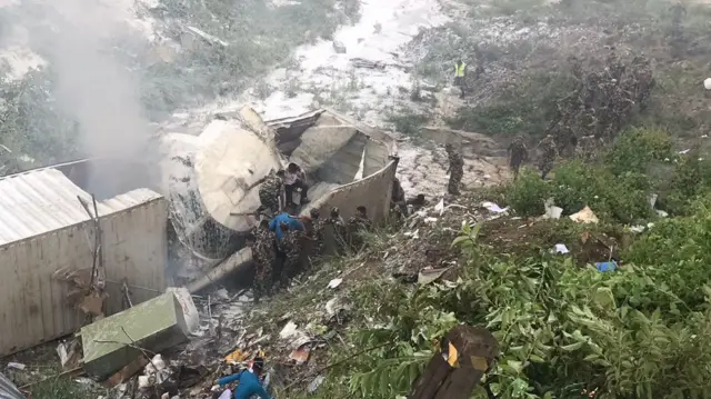 बीबीसीले प्राप्त गरेका तस्बिरमा सेना र प्रहरीले पाइलटलाई कन्टेनरभित्र रहेको ककपिटको खण्डबाट बाहिर निस्कन सहयोग गर्दै गरेको देख्न सकिन्छ।