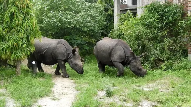 पुष्पा र अञ्जली चितवनको राष्ट्रिय प्रकृति संरक्षण कोष सौराहामा मानिसहरूको रेखदेखमा हुर्किएका दुईवटा टुहुरा गैँडा हुन्।