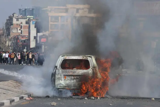 ईपीएस कार्यालयबाहिर धर्ना दिइरहेका प्रदर्शनकारीहरूले भौतिक निर्माण तथा पूर्वाधारमन्त्री प्रकाश ज्वालाको गाडीमाथि आगजनी गरेका थिए।