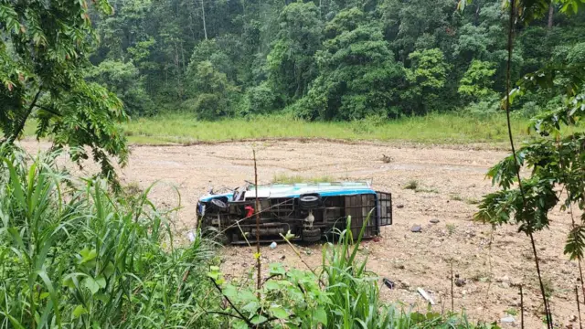 बस मूल सडकबाट झन्डै ५० मिटर तल खसेको छ।