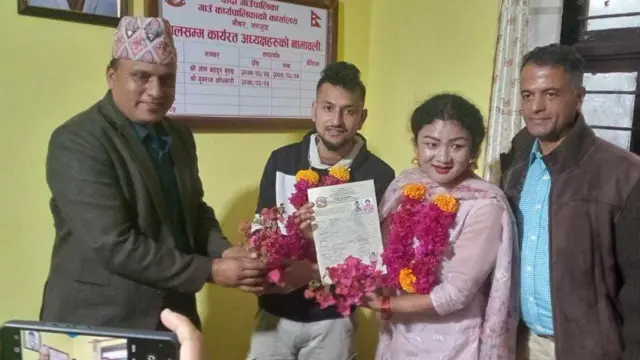 “पञ्जीकरण विभागबाट हामीलाई निर्देशन भएअनुसार प्रमाणपत्रको पुछारमा सर्वोच्च अदालतको आदेशबमोजिम भन्ने विवरण हातैले लेखेर जारी गरिएको हो,” विवाह दर्ता प्रमाणपत्रमा हस्ताक्षर गरेकी लमजुङको दोर्दी गाउँपालिका वडा नम्बर २ की कर्मचारी रञ्जु विश्वकर्माले बीबीसी न्यूज नेपालीसँग भनिन्।