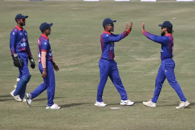 नेपालबाट करण केसीले ३, गुलशन झाले २ तथा सोमपाल कामी र अविनाश बोहोराले एक-एक विकेट लिए।