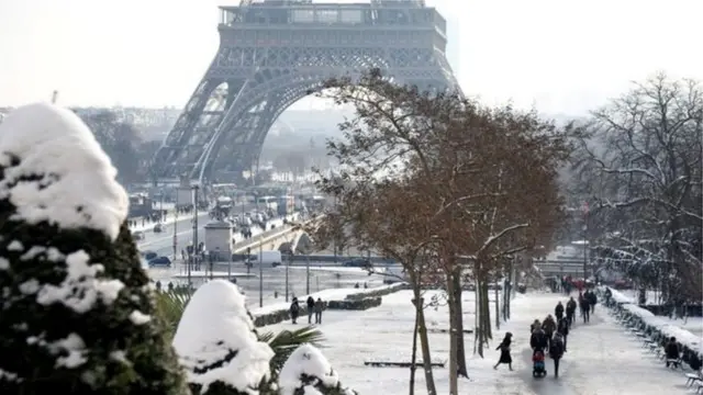 आइफल टावरका प्लेटफर्म र भर्याङ्गहरू हिउँले भरिएका छन्, जसका कारण पर्यटकहरूलाई आउजाउ गर्न कठिनाइ भएको छ।