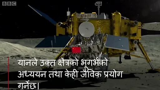 उक्त यान गत जेनुअरी ३ का दिन चन्द्रमाको पृष्ठभागमा अवस्थित क्षेत्रको भौगोलिक अनुसन्धान गर्न उपकरणहरूसहित त्यहाँ अवतरण गरेको थियो।