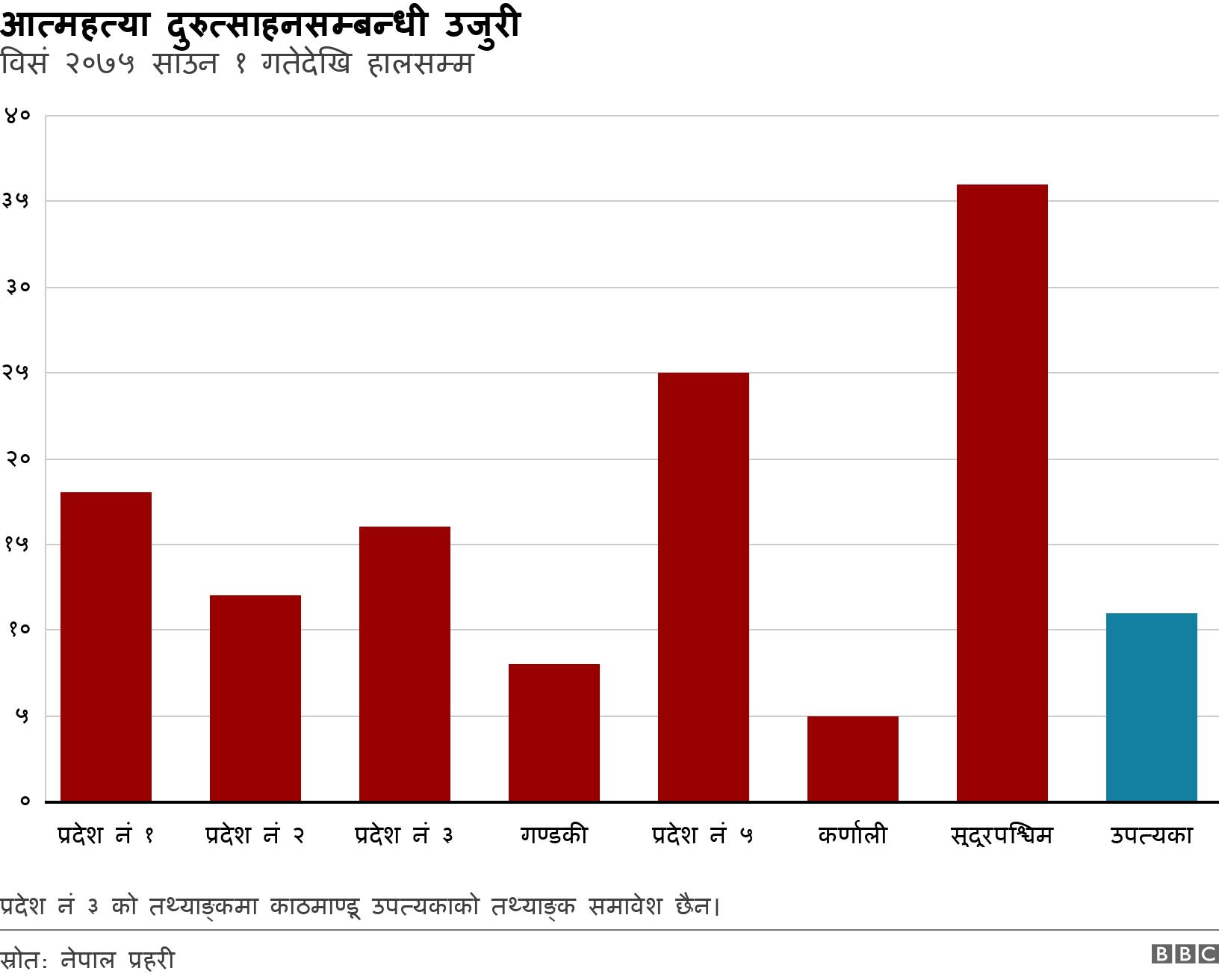 प्रहरीका अनुसार मुलुकका विभिन्न स्थानमा गरेर २०७५ साउन १ गतेदेखि हालसम्म आत्महत्या दुरुत्साहन सम्बन्धी १३१ वटा उजुरी परिसकेका छन्।