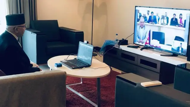 स्वास्थ्योपचारका फेरि सिङ्गापुर गएका प्रधानमन्त्री केपी ओलीले टेलिप्रिजेन्सबाट अर्थात् इन्टरनेटबाट भिडिओ वार्ता गर्दै मन्त्रिपरिषद् बैठकको अध्यक्षता गरेपछि सामाजिक सञ्जालमा त्यसको चर्चा भएको छ।