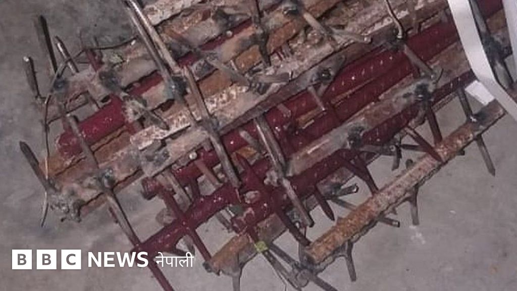 बिहीवार सार्वजनिक भएको तस्बिरमा फलामको डन्डीमा किला ठोकेर बनाइएको घरेलु कच्चा हतियार देख्न सकिन्छ।