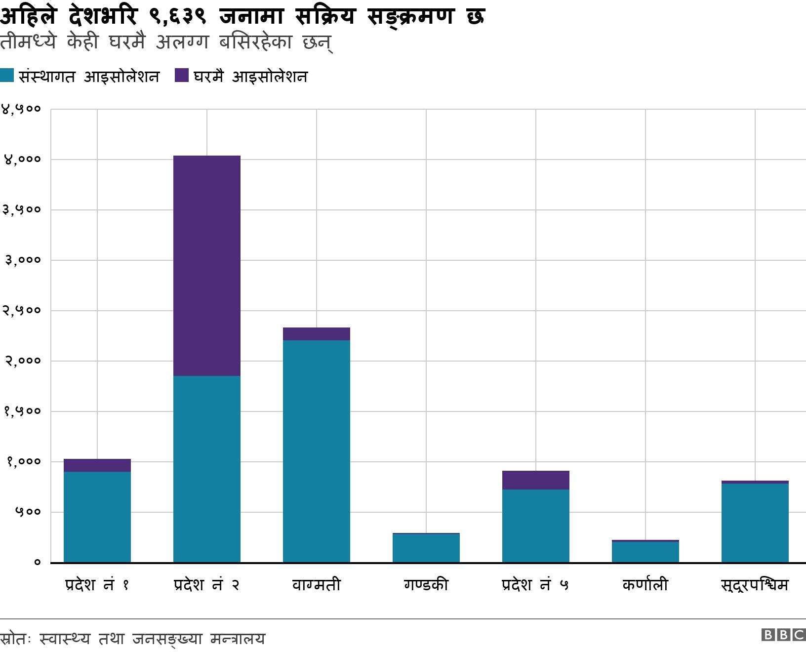 अहिले सबैभन्दा बढी सक्रिय सङ्क्रमित प्रदेश नं २ र वाग्मती प्रदेशमा छन्।